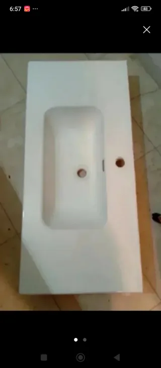 ¿Buscas renovar tu baño con un toque elegante y minimalista? Vendo este lavabo de cerámica blanca de alta calidad. Su diseño rectangular de líneas rectas es perfecto para baños modernos o aseos de cortesía donde se quiera aprovechar al máximo el espacio sin renunciar al estilo. Características principales: Material: Cerámica brillante de fácil limpieza y gran durabilidad. Diseño: Formas geométricas modernas con bordes definidos. Estado: En perfecto estado, sin grietas ni desconchones. Versatilidad: Incluye el orificio estándar para el grifo y el desagüe. Ideal para: Muebles estrechos, encimeras compactas o colgar.37.5 x 19