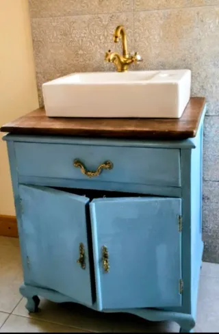 PRECIO NEGOCIABLE. SI SE COMPRAN LOS DOS DE MI PERFIL, PRECIO ESPECIAL. Conjunto de lavabo con mueble y grifo. 83 de alto. 83 de ancho. 55 de profundidad. - Mueble de color blanco. - Encimera de mármol. - Grifería cromada.