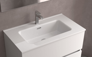 Lavabo de diseño moderno de la marca Jacob Delafon, incluye grifo. Se ha retirado de obra nueva. No se ha usado apenas. Medidas 81x46x12 CMS. - Lavabo rectangular de cerámica blanca. - Grifo monomando cromado.