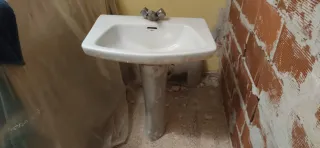 Se venden dos lavabos de la marca Roca, cada uno con su pie y grifo. - Marca: Roca - Incluye pie y grifo - Precio por unidad: 50 euros