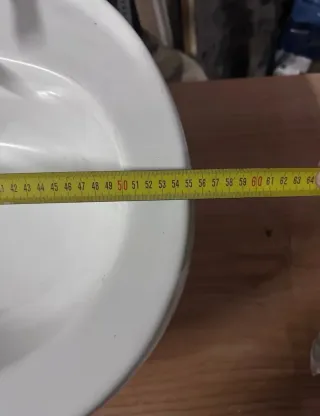 Pica antigua de lavabo, ideal para proyectos de restauración o decoración rústica. - Material de cerámica blanca. - Diseño clásico con jaboneras a los lados. - Agujero para grifo y desagüe central .longitud 56 cm Profundidad 46 cm Alta 20/30 cm