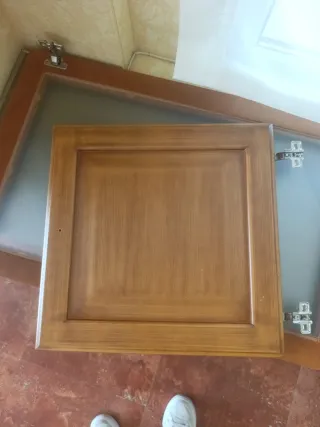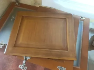 Conjunto de puertas de mueble fabricadas en madera maciza. Diseño clásico con marco. - Material: Madera maciza. Medidas 47'5*37 - Acabado: Tono madera natural con veta marcada. - Diseño: Marco perimetral y panel central. - Bisagras: Incluye bisagras metálicas de fácil instalación Tengo 2 a 10 euros cada uno