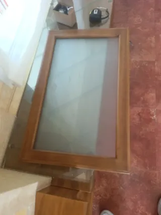 Puerta de madera maciza para mueble, con un elegante cristal biselado. Medidas 42'5*38*5cm Tengo 2 a 10 € cada una - Material: Madera maciza - Cristal: Biselado Incluye bisagras metálica de fácil instalación