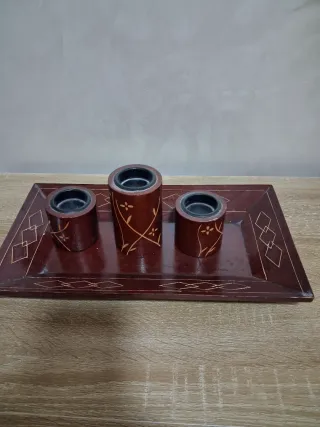 Juego de madera marrón para velas