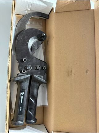 Herramienta de corte Cembre KT45. KT45 Herramienta Mecánica de Corte Cembre Corta cables para conductores en cobre y aluminio hasta 45 mm de diámetro. Para cables de cobre y aluminio de hasta 45 mm de diámetro No apto para cables ACSR, blindados o de acero Diseño robusto y duradero Dimensiones: 250 x 110 mm Alto rendimiento para un corte rápido y preciso Ideal para instalaciones eléctricas y cableados profesionales P.V.P 320€ Nuevo