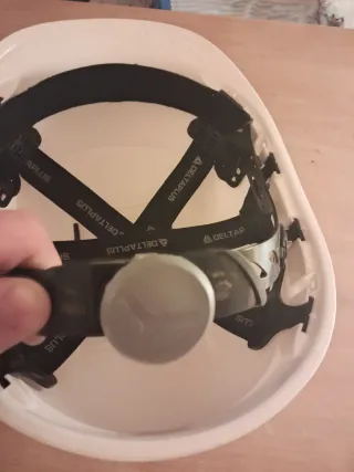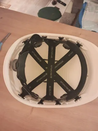 Casco de seguridad profesional de la marca Delta Plus, diseñado para proteger en entornos de trabajo. - Sistema de suspensión ajustable. - Interior con banda de confort. - Diseño ergonómico..