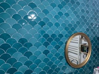 Precioso azulejo de cerámica italiana con forma y diferentes tonos de azul, dispongo de 4 m2 aproximadamente, el precio es del 60€/m2, me costó 100€. puesto queda precioso.