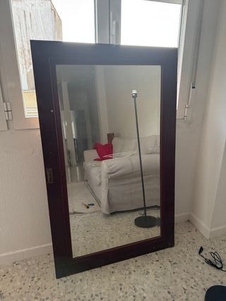 Puerta de armario con espejo, ideal para reformar y quedarla en vestidor - Marco de madera oscura. - Espejo de cuerpo entero.
