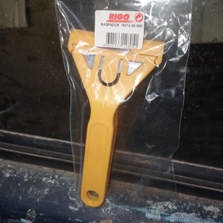 - rasqueta pintura, con cuchilla, ideal para eliminar manchas de pintura de superficier rígidas como suelos o cristales, también válida para quitar vinilos de rotulación, 1€ la unidad