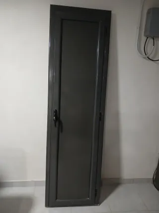 Puerta de aluminio con medidas de 55x212. - Material: Aluminio. - Color: Gris oscuro.