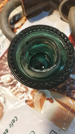 Casquillo de luz de vidrio en color verde. Presenta un diseño con borde decorado con pequeñas esferas. - Material: Vidrio. - Color: Verde.