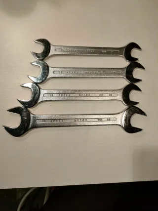 Vendo lote de 4 llaves fijas de dos bocas de la prestigiosa marca española ACESA (Serie Nº 702). Herramientas de acero al cromo vanadio, extremadamente resistentes y para toda la vida. Están en perfecto estado de conservación, sin holguras y con el grabado de las medidas bien visible. Ideales para mecánica pesada, agrícola o industrial. El lote incluye las siguientes medidas: 30 - 32 mm 25 - 28 mm 24 - 26 mm 21 - 23 mm