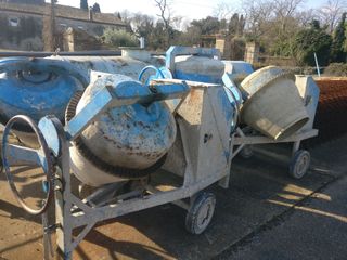 Se venden hormigoneras monofásicas de 200 litros y 300 litros. Ideales para obras, reformas, construcción y trabajos agrícolas. Funcionan a corriente monofásica (220V). Estructura robusta y cuba de gran capacidad. Máquinas resistentes y pensadas para uso profesional. Están usadas y pueden presentar desgaste estético por el trabajo, pero son fuertes y fiables. Disponibles varias unidades. Precio según capacidad (200L o 300L). 750€ - 900€