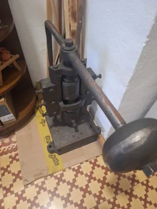 Prensa de hierro fundido de estilo industrial, una biena herramienta, mantenimiento al dia, engrasada y a punto para trabajar. - Construcción robusta en metal. - Mecanismo de palanca con volante.