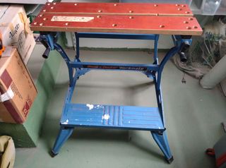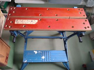 Mesa de trabajo plegable Black & Decker Workmate en buen estado. Ideal para bricolaje o manualidades. - Estructura metálica azul. - Dos tableros de madera. - Mecanismo de plegado fácil. - Incluye dos mangos laterales.