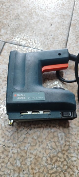 Grapadora eléctrica Black+Decker KX418E en buen estado. Ideal para trabajos de bricolaje. - Funciona con clavos de 6-14mm. - Marca: Black+Decker - Modelo: KX418E