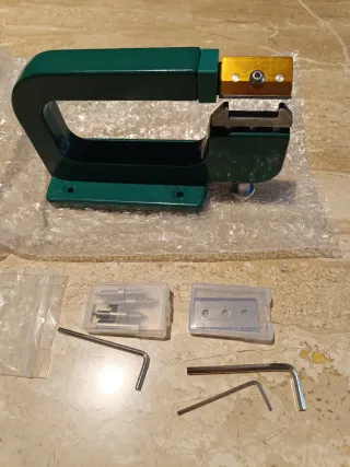 Herramienta para rebajar cuero. - Incluye cuatro rodillos de fistintos anchos, juego de llaves Allen y cuchillas de repuesto.