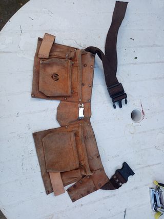 Cinturón portaherramientas de cuero de la marca Stanley. - Cinturón portaherramientas trabajo seminuevo. - Fabricado en cuero resistente. - Múltiples bolsillos para organización. - La correa original se dañó y fue reparada añadiendo un trozo nuevo. 🟢 Recoger en persona viernes y fin de semana. 🔴 Envíos los viernes. Gracias