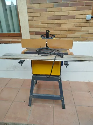 Sierra de mesa para trabajos de carpintería. Ideal para cortes precisos en madera. - Superficie de trabajo amplia. - Guía de corte ajustable. - Estructura robusta.