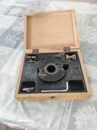 Set de 15 fresas para carpintería, ideal para trabajos en madera. Incluye una caja de madera para su almacenamiento. - Variedad de fresas con diferentes perfiles. - Incluye llave Allen para ajuste.