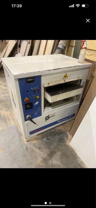 Cepilladora de carpintería marca Formula SP1. - Panel de control con botones e indicadores. - Entrada y salida para el material. - Diseño robusto para uso profesional. Tlf 696900967