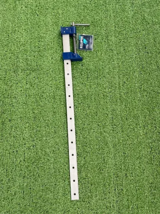 Prensa de carpintería. Cuerpo de metal azul. Barra de acero con agujeros. Incluye etiqueta original. Falta una pieza de la prensa Eclipse profesional tools sash Clamp herramientas carpintería esc 24 Dewalt Bosch makita milwaukee festool bahco craftsman gedore rothoblass hultafors kreg tormek arbotech bessey metabo 2223