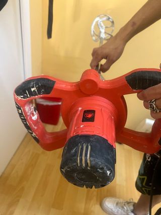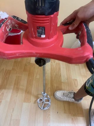 Batidora de varillas para trabajos de obra. Ideal para mezclar materiales de construcción. - Mango ergonómico para un mejor agarre. - Varillas de mezcla incluidas.