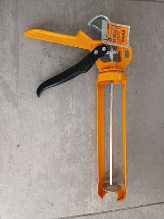 Pistola de calafateo de la marca Ingco, ideal para trabajos de sellado. - Mango ergonómico para un agarre cómodo. - Construcción robusta para mayor durabilidad. - Mecanismo de fácil carga y descarga.