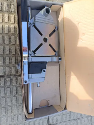 Soporte de columna para taladro, ideal para trabajos de precisión. - Construcción robusta en metal. - Base estable para montaje. - Mango para ajuste de altura.