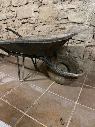 Carretilla de obra resistente, ideal para trabajos de construcción o jardinería. - Estructura metálica. - Neumático para facilitar el transporte. - Nunca se ha llenado con cemento
