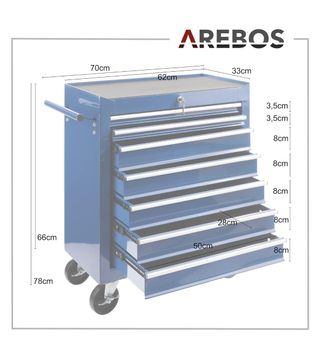 ¡Nuevo y sin estrenar, con un pequeño desperfecto por transporte mostrado en las fotos! Arebos Carro de Taller | Carro de Herramientas | 7 cajones | con Cierre centralizado | Incl. Alfombrillas Antideslizantes | 2 Ruedas con Freno de Bloqueo | Azul Marca Arebos Color Azul Material Acero aleado Usos recomendados para el producto Arte y manualidades Función especialResistente a los arañazos [Perfectamente equipado] Nuestro carro de herramientas AREBOS está equipado con un total de 7 cajones | Fabricado en acero macizo | Encimera robusta y resistente a los arañazos | Los cajones con correderas de bolas y alfombrillas antideslizantes