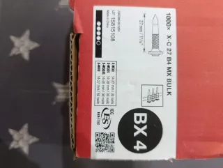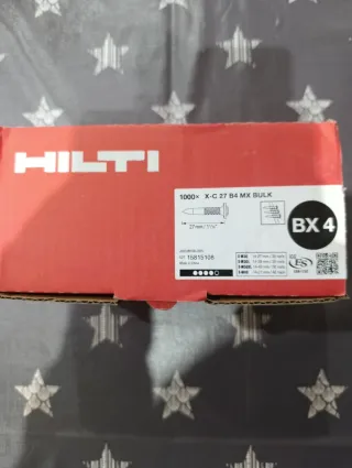 Caja de 1000 clavos Hilti X-C 27 B4 MX BULK. - Longitud: 27 mm / 1 1/16 - Modelo: BX 4 - Fabricado en China.
