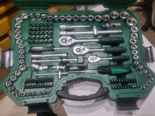 Set de 215 piezas de herramientas de alta calidad, templadas y cromadas. - Incluye llaves de vaso, llaves combinadas y accesorios. - Diseño ERGO HANDLE para un agarre ergonómico. - Marca WOKIN INDUSTRIAL.