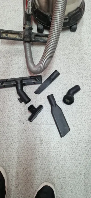 Se vende aspirador industrial con varios accesorios. - Incluye cepillo redondo. - Boquilla plana. - Boquilla estrecha. - Cepillo para tapicerías.
