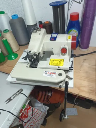 Máquina de coser industrial para realizar bajos invisibles. - Ideal para acabados profesionales. - Diseñada para facilitar la costura de dobladillos. - Permite un trabajo rápido y eficiente.