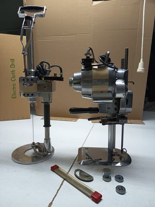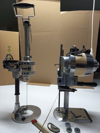 Se venden dos máquinas de corte industriales, una de la marca Hitaka modelo SW-3 y otra de tipo taladro. - Máquina de corte Mitaka SW-3. - Máquina tipo taladro con base circular. - Ambas máquinas presentan un diseño metálico robusto.