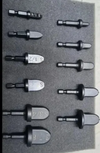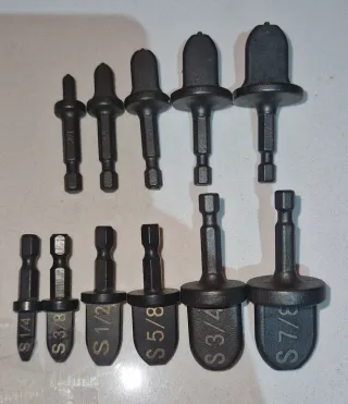 Set de 7 abocardadores o abocinadores para trabajos de aire acondiciona y frio industrial. Incluye diferentes tamaños para adaptarse a diversas necesidades. Fácil y rápido de usar ahorra mucho tiempo. Para usar con taladro para cobre. - Fabricados en metal resistente. - Tamaños marcados: S 1/4, S 3/8, S 1/2, S 5/8, S 3/4, S 7/8.