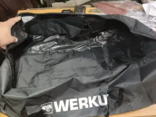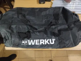 Bolsa de tela resistente con el logo de WERKU, ideal para guardar herramientas o para otros usos. - Color negro. - Cierre con cremallera. - Asas para su transporte.