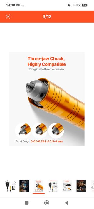 Herramienta Dremel Vevor 1200, sin usar. Ideal para trabajos de precisión. - Mandril de tres mordazas. - Alta compatibilidad con accesorios. - Rango de sujeción: 0.5-6 mm.