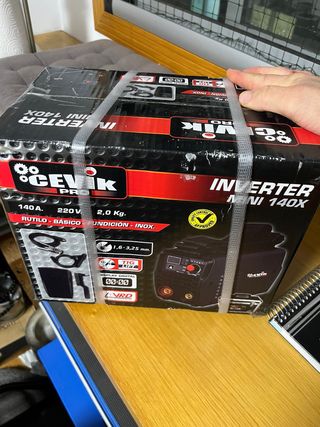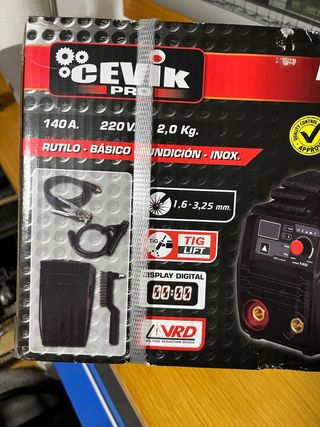 Soldadora inverter Cevik Pro Mini 140X. - Potencia de 140A. - Voltaje de 220V. - Peso de 2,0 Kg. - Apta para rutilo, básico y TIG. - Para electrodos de 1,6-3,25 mm. - Pantalla digital. Sin desembalar