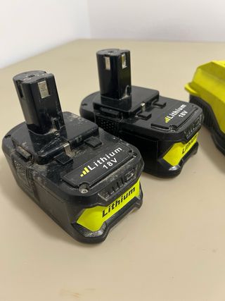 Se vende cargador Ryobi junto con dos baterías de 18V. No funcionan ninguno, para piezas - Cargador compatible con baterías Ryobi de 18V. - Incluye dos baterías de litio de 18V. - Baterías con indicador de carga.