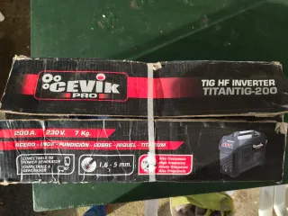 Soldadora inverter TIG HF de la marca CEVIK, modelo TITANTIG-200. - Potencia de 200 A. - Voltaje de 230 V. - Peso de 7 Kg. - Compatible con generadores de energía. - Adecuada para soldar acero, inox, fundición, cobre, níquel y titanio. - Capacidad para electrodos de 1,6 a 5 mm. El equipo está en muy buen estado. El único desperfecto es que tiene unas marcas de soldadura en el mango de la pistola tig. Tal y cómo muestro en una de las fotos. La compré para restaurar una moto y ya cumplió su cometido.