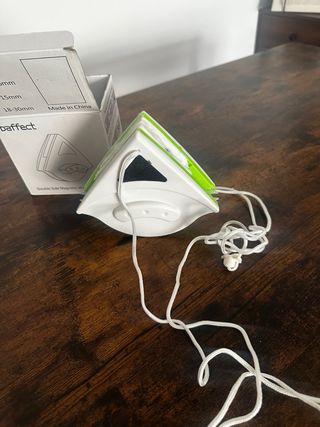 Herramienta triangular para limpiar ventanas de doble cara magnético. Incluye un cordón de seguridad. - Diseño triangular. - Cordón de seguridad blanco. - Sin estrenar.