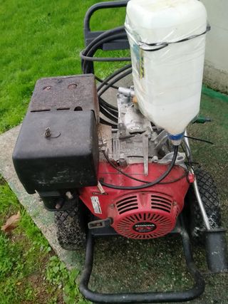 Hidrolimpiadora Honda con motor de gasolina. 13cv - Incluye manguera enrollada. - Depósito para detergente. - Ruedas para facilitar el transporte.