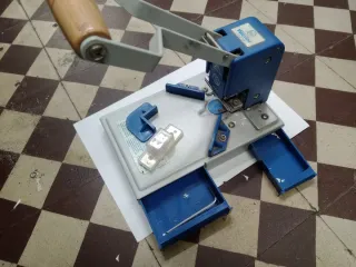 Herramienta para redondear esquinas de cartulina. Con dos ángulos de corte R6 y R10 Con caja , herramientas e instrucciones originales. - Marca: Warrior. - Color: Azul y gris.