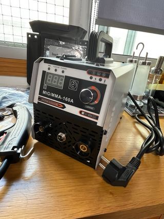 Máquina de soldar multifunción MIG/MMA. - Modelo: MIG/MMA-160A. - Tecnología Inverter. - Incluye manual de instrucciones y rollo de hilo. Hilo y electrodo, todo lo necesario para soldar