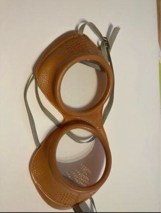 Gafas protectoras antiguas de la marca Climax, fabricadas en España. Diseño vintage con un acabado texturizado en la montura. - Marca: Climax - Fabricación: Made in Spain - Diseño: Vintage Un accesorio retro para coleccionistas. Gafas de seguridad industriales o de soldadura antiguas o de moto (no lo sé). Fabricadas con un material termoplástico rígido y duradero (posiblemente baquelita o celuloide). Diseño clásico de copa para una protección ocular completa. Lentes de cristal transparente. Correa de tela ajustable para un ajuste seguro.