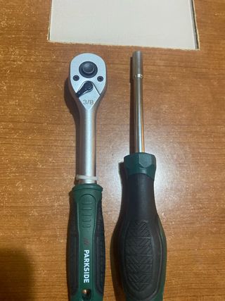 Se vende lote de herramientas de la marca Parkside. - Llave de carraca de 3/8. - Mango de destornillador con punta.