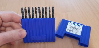 Pack de 10 brocas de alta velocidad (HSS) de la marca IZAR.Precio por estuche de 10un. Dispongo de 5 estuches. - Modelo: Ref. 1010 - Norma: DIN 338N - Diámetro: 10 mm - Uso general