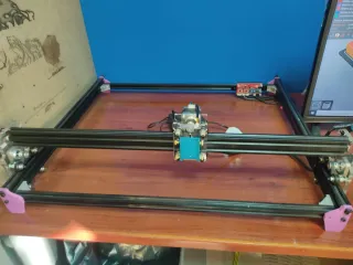 Estructura de máquina CNC para grabado láser. Ideal para proyectos DIY y personalización. - Marco de aluminio resistente. - Componentes de movimiento lineal. - Soporte para módulo láser (láser no incluido). - Placa, motores, fuente y base de madera donde se ancla. - Superficie de grabado 720x630 cm arriba o abajo. Instalar un láser y a funcionar.